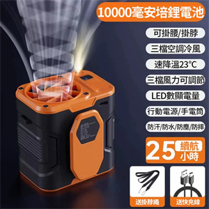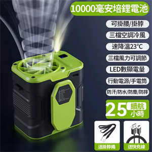 戶外專用【日韓進口】10000mAh半導體掛腰冷氣扇可當行動電源超大容量 22.5w智慧快充 可上飛機續航25小時 半導體冷氣風再也不用擔心炎炎夏日出門在外的煩惱~